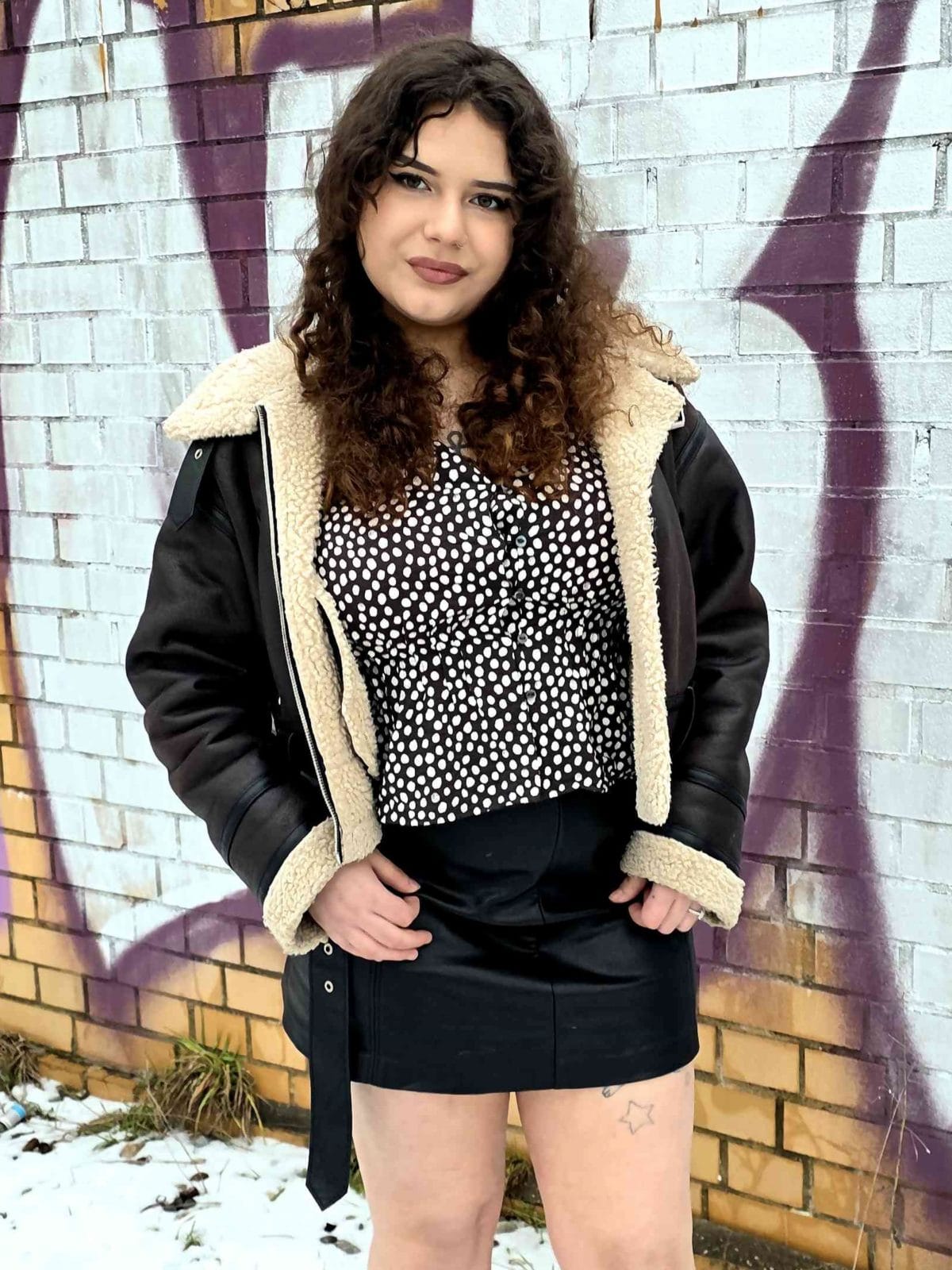 Winter made a brief comeback here in Berlin. Nevertheless, I went out with my camera and was rewarded. I met an 18-year-old woman with curly hair. She was in Berlin to party, and a casting call fit in perfectly. Even in the first few pictures, I could already see her bust size. I managed to convince her to come back to my place. That's where German Scout Rose Noir could begin.